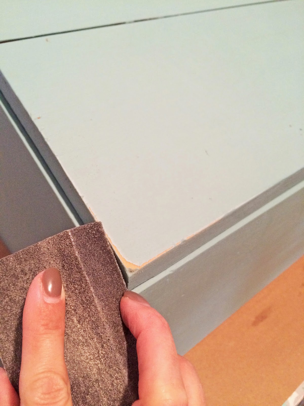 Distress using sand paper.